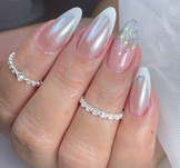 As unhas seguem a mesma narrativa glacial: tons gelo, prata, lilás translúcido e branco frio. O minimalismo aparece não só nas cores, mas também nas embalagens dos cosméticos, que ganham design limpo em azul, branco e lilás.